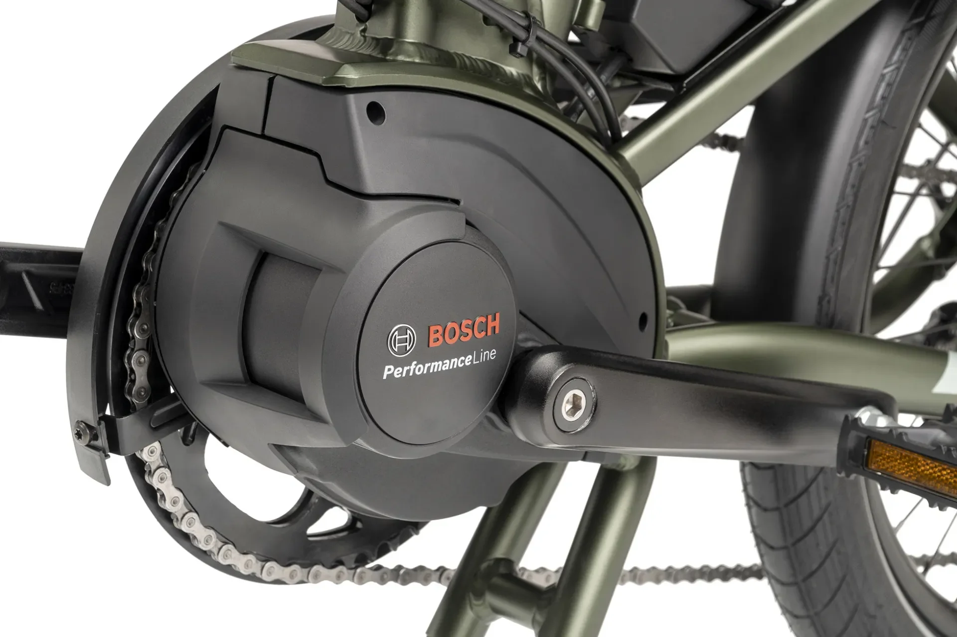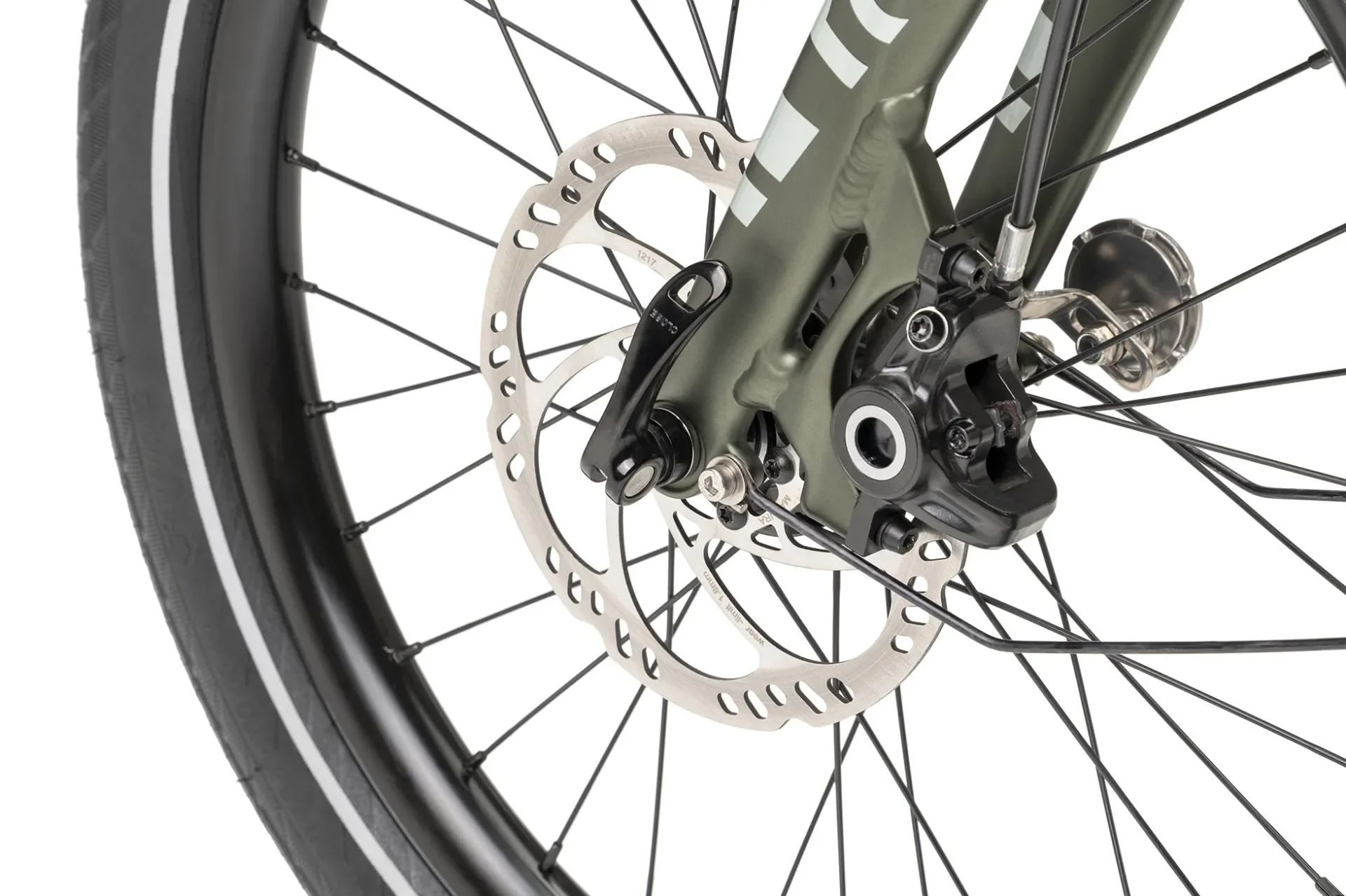 Unfolded, like a good urban bike fully equipped for the city and everyday use. Folded in its intermediate position, it rolls up behind you like a suitcase. In its most compact position, you can store it at home, on the train or in the trunk of your car.