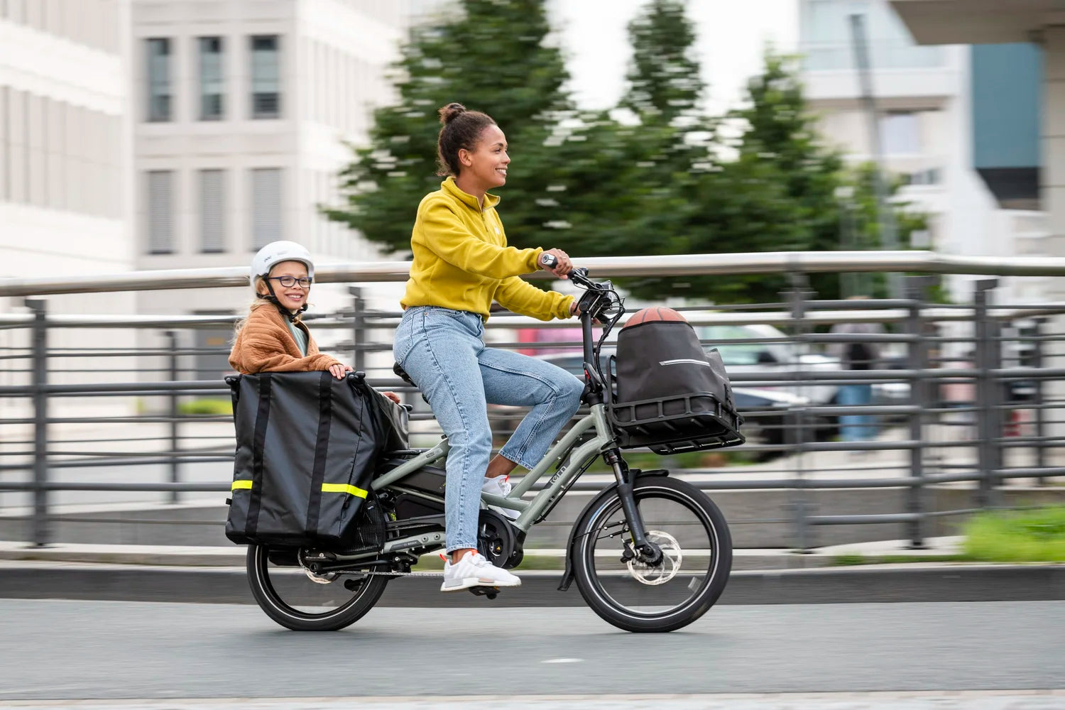 Tern Storm Box Mini transforms the rear of your bike into a roomy, weather-protected bucket for one passenger. It includes two weather-resistant lids—the lockable Cargo Lid Mini to protect your stuff from rain and prying eyes, and the Kid Lid Mini to keep little ones warm and cozy, even on bad-weather days.